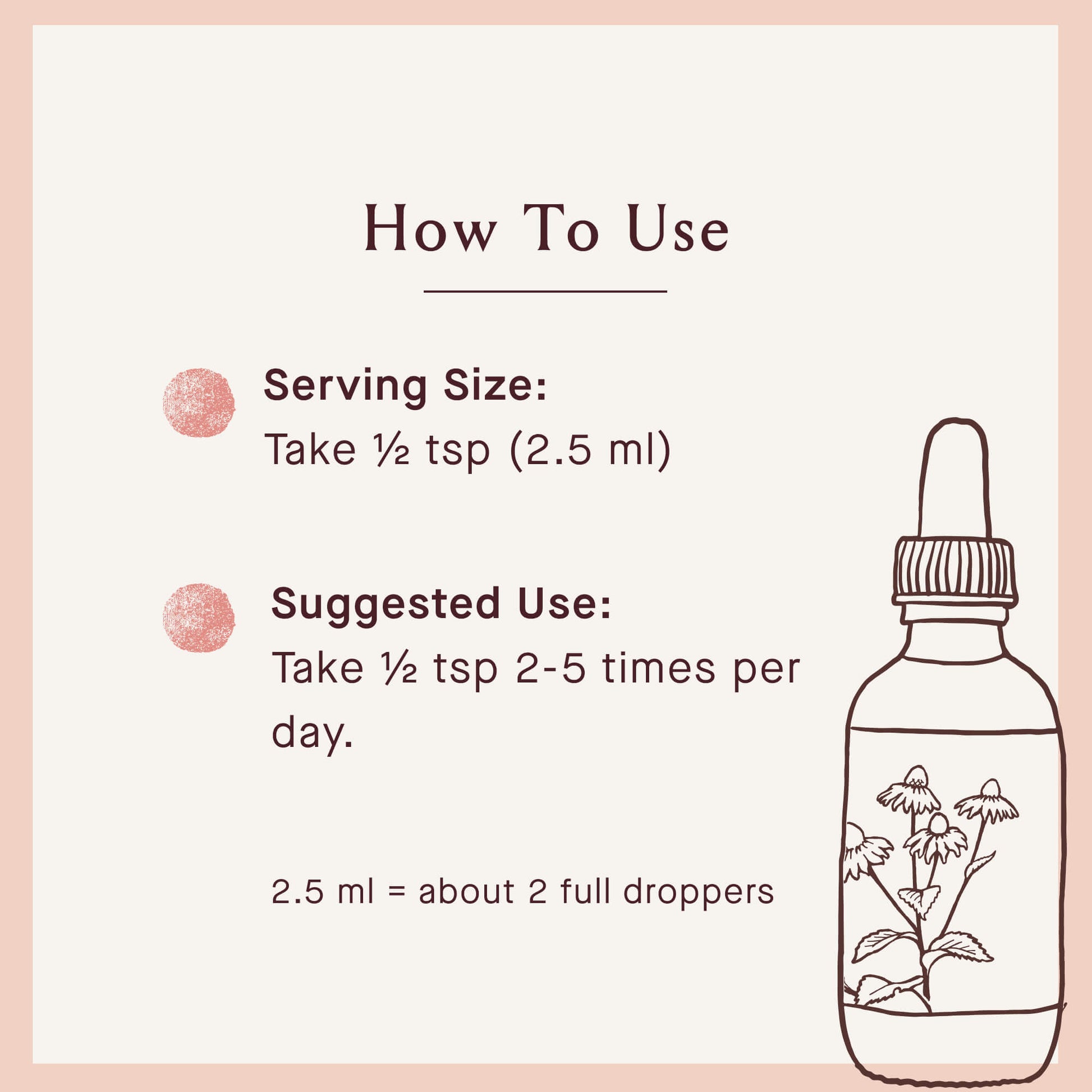 Suggested use: 2.5 ml (1/2 tsp) 2 to 5 times per day. Use regularly over time for best results.