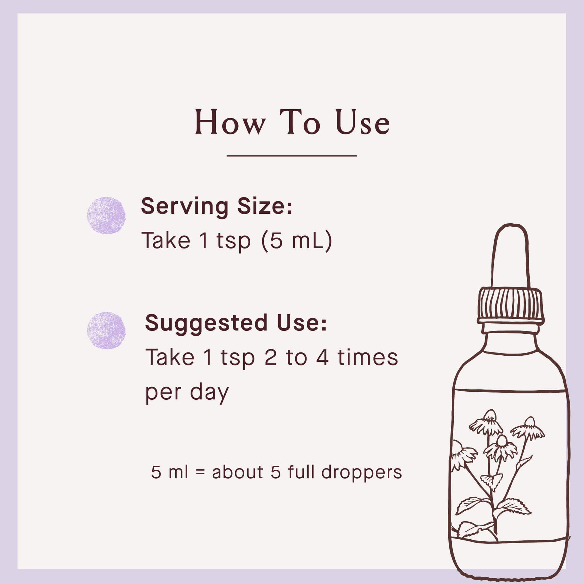 Suggested use: 5 ml (1 tsp) 2 to 4 times per day.